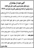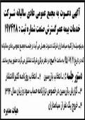آگهی مجمع عمومی عادی بطور فوق العاده بدینوسیله از کلیه